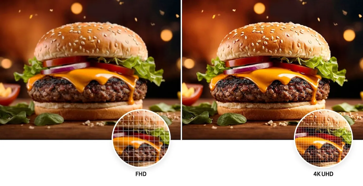 - Scherpe 4K-beeldkwaliteit: presenteer uw afbeeldingen, reclameboodschappen of menukaarten met ultrarealistische scherpte en detaildiepte dankzij de UHD-uitvoerresolutie.