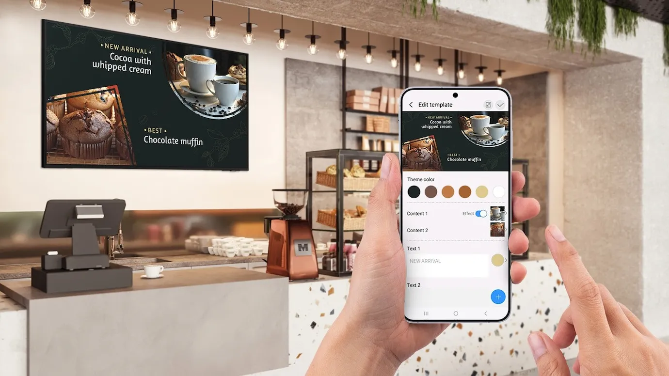 De sleutel tot effectieve digital signage ligt in het gebruiksgemak. De Samsung 43" BE43FX-H zakelijke Pro TV maakt een einde aan ingewikkelde software en dure externe spelers.De centrale bediening gebeurt via de Samsung zakelijke TV-app, die beschikbaar is voor Android en iOS. Hiermee kunt u vanaf uw persoonlijke apparaat content beheren: u plant content, wisselt deze spontaan of gebruikt de vele kant-en-klare sjablonen om snel professionele beelden te creëren. Vooral voor eigenaren die hun content snel moeten aanpassen, lost deze app het probleem van trage contentupdates op.In combinatie met Samsung VXT (de cloudgebaseerde oplossing voor beheer op afstand) kunt u niet alleen content, maar ook hardware-instellingen beheren, ongeacht de locatie en zonder dat er training nodig is. Deze combinatie garandeert maximale efficiëntie in het gebruik en zorgt ervoor dat uw informatie altijd up-to-date is.